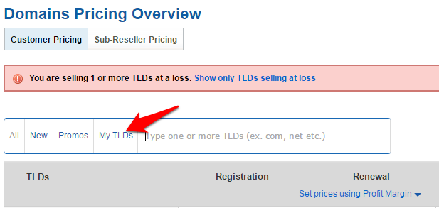 • Click on the My TLDs link to list the TLDs for which you are a registrar. If you are a reseller for any TLD, click here learn how to activate / manage an available Promo.