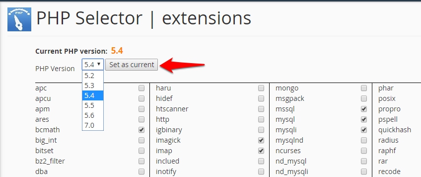 Aider Team supports PHP 5.2, 5.3, 5.4, 5.5, 5.6 and 7.0 on its cPanel Hosting Servers, with PHP 5.4 being the default version. In order to change the PHP version, you need to make the following changes from the cPanel: