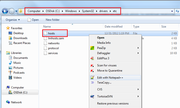 Go to C:\Windows\System32\drivers\etc and locate the hosts file.