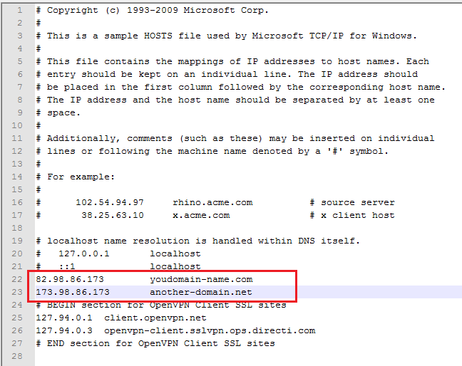 Add your host entires as shown in the snapshot below and save the file.