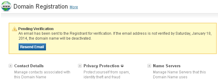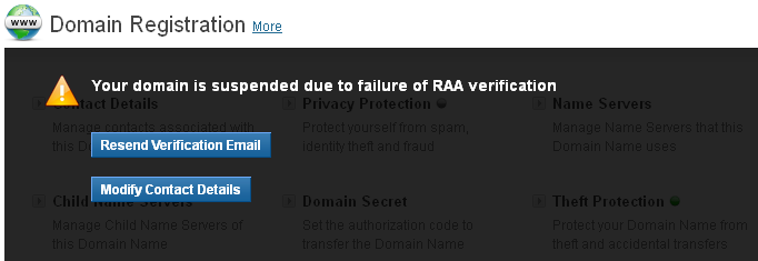 • re-send the verification email, in case the Registrant Contact has not received it.