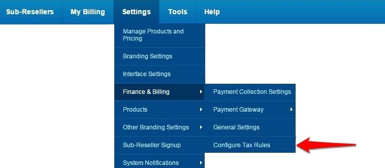 In the menu, click on Settings > Finance & Billing> Configure Tax Rules.